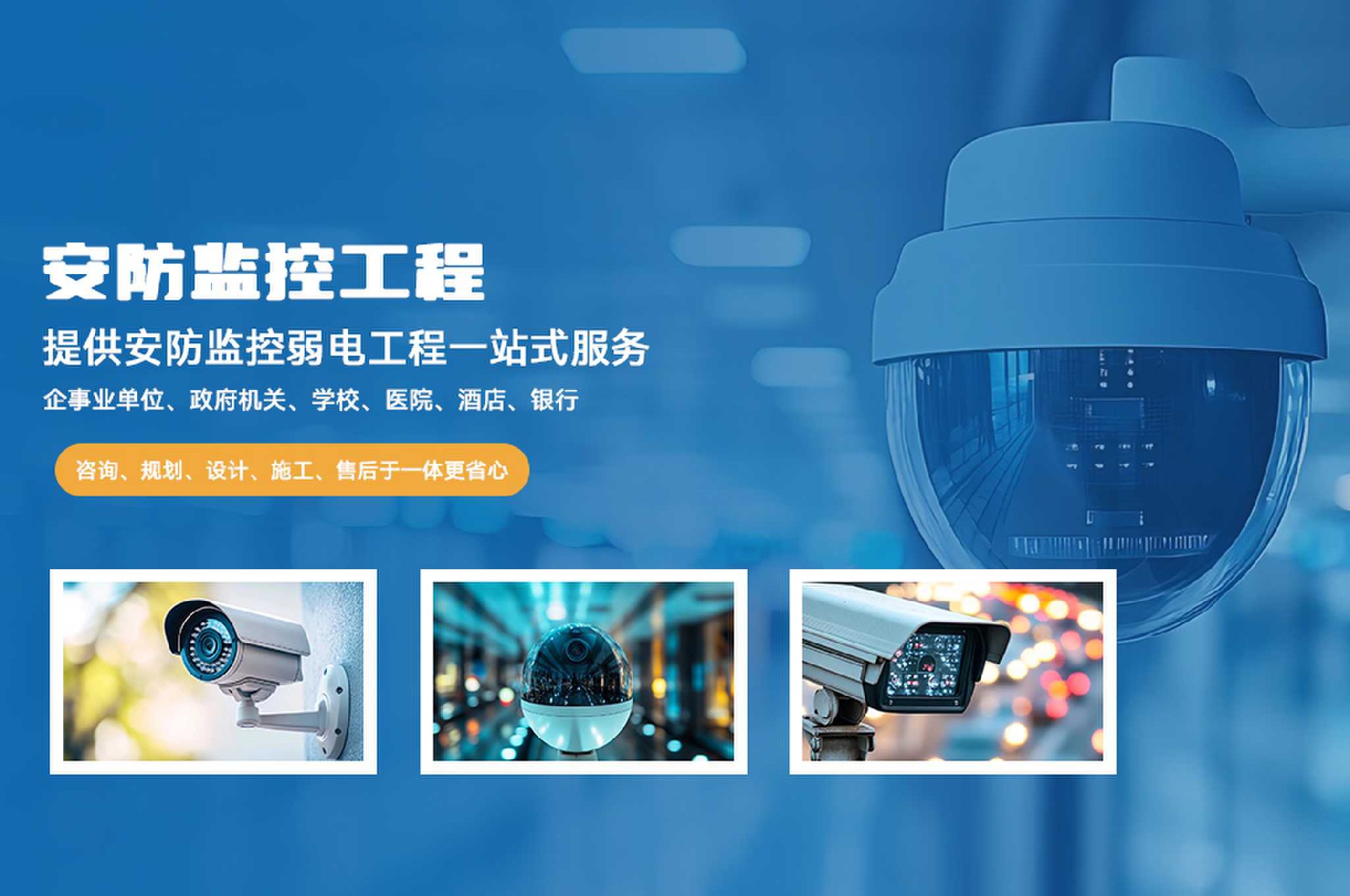 安防監(jiān)控智能化服務(wù)商,專注安防監(jiān)控整體解決方案,視頻監(jiān)控系統(tǒng)、門禁系統(tǒng)、車輛道閘系統(tǒng)、紅外報警系統(tǒng)等